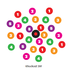 As many archers as you can get On the line at one time, max 2 archers per boss. It starts with everyone shooting 1 arrow closest to the x. The archer closest to the x goes first and shoots an arrow. The other archers in turn have to replicate the shot in position and colour. If out of position, it does not matter that much (unless you want to be quite strict), but out of colour means they have to shoot again. At the end, any archer who gets the wrong colour has that arrow removed and placed under the target. Keep going until there are only two archers left with arrows. Then it’s a straight head-to-head nearest to the printed number 5 on the target. If there are some fairly good archers, then to eliminate them, make it so that they have to shoot the colour and the number.